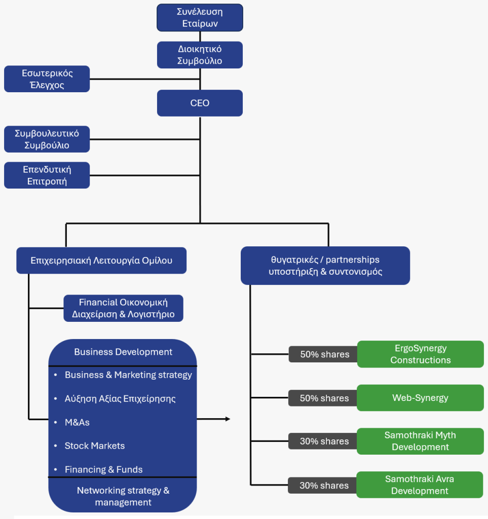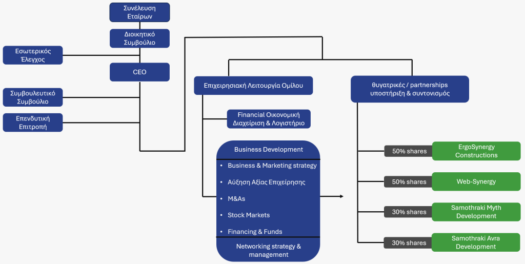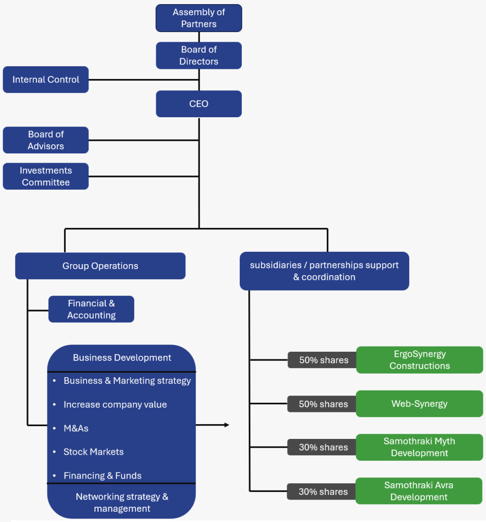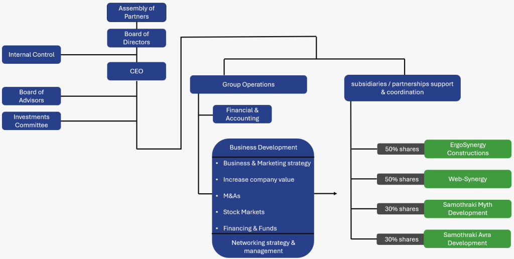 Ως εταιρεία συμμετοχών, η ErgoSynergy βρίσκεται στην πρώτη γραμμή κορυφαίων εταιρειών και επαγγελματιών, με μακρά ιστορία, εμπειρία και ιστορικό επιτυχημένων δραστηριοτήτων.